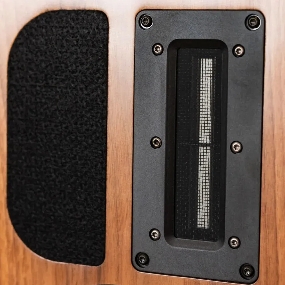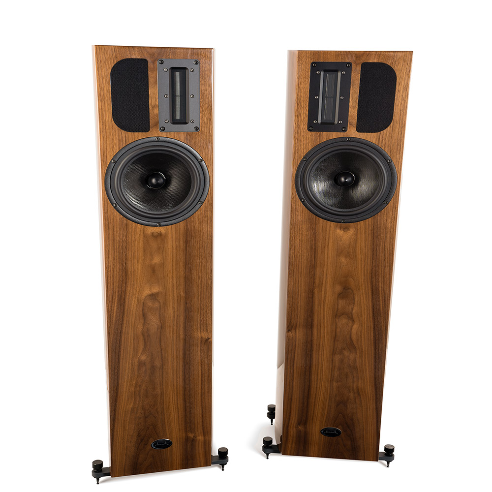 В основе — двухполосная конфигурация: СЧ/НЧ-драйвер с плетёным полипропиленовым диффузором и ленточный ВЧ-излучатель нового поколения с неодимовым магнитом и металлизированной полимерной диафрагмой удвоенной площади. Фетровый полумесяц контролирует направленность высоких частот. Внутренняя разводка выполнена посеребрённым кабелем из бескислородной меди в тефлоновой изоляции, кроссовер собран из аудиофильских компонентов.