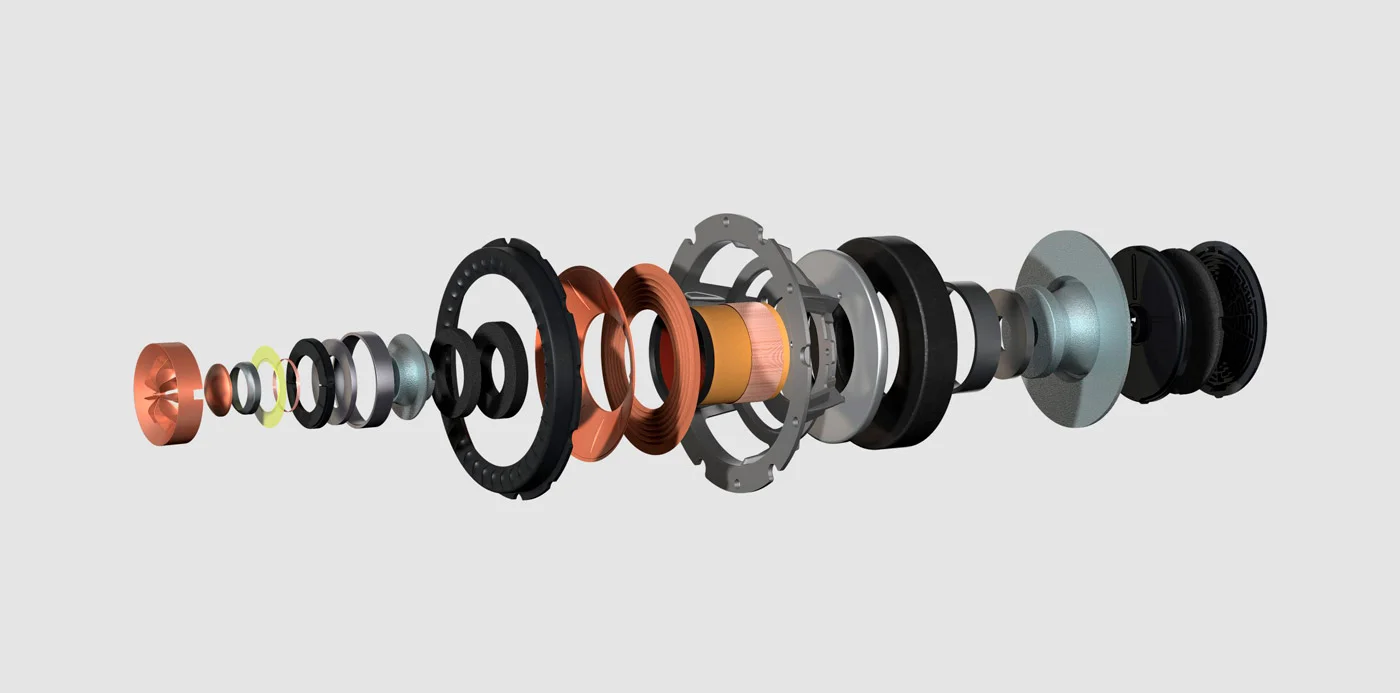 Технология поглощающего метаматериала (MAT): Революционная лабиринтообразная структура, расположенная позади твитера, поглощает 99% нежелательных высокочастотных резонансов, действуя как «акустическая черная дыра». Результат — кристально чистые, натуральные и невероятно детализированные высокие частоты без малейшей окраски.
